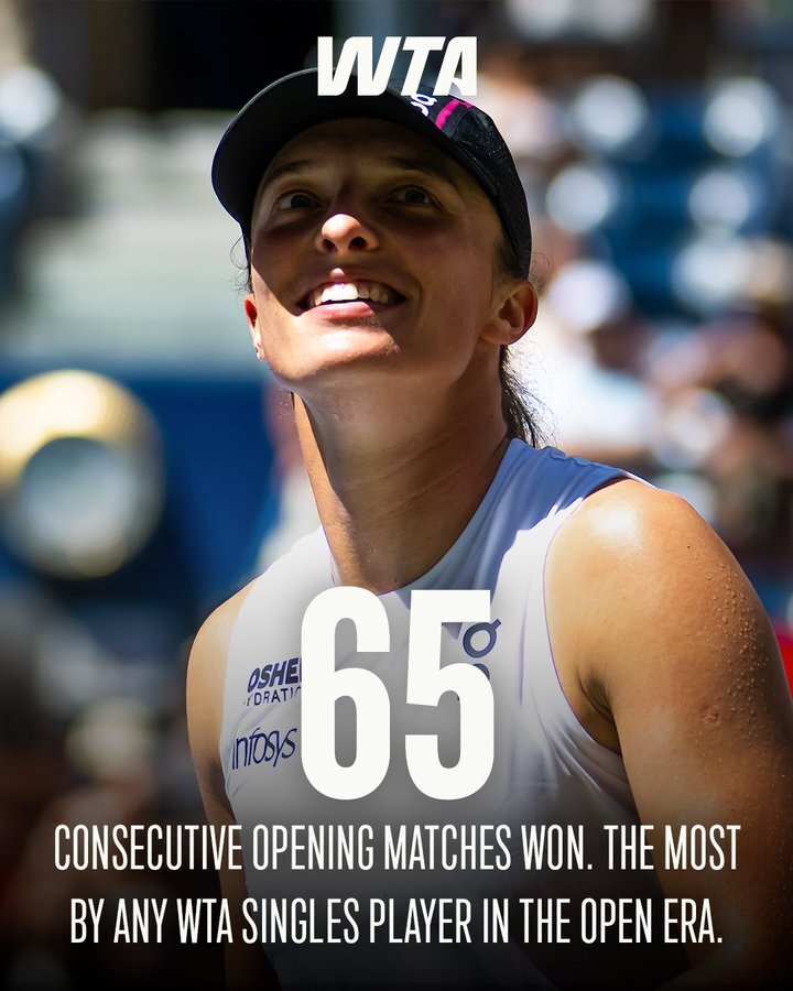 斯瓦泰克强势开局直落两盘晋级,创公开赛时代首战65连胜纪录